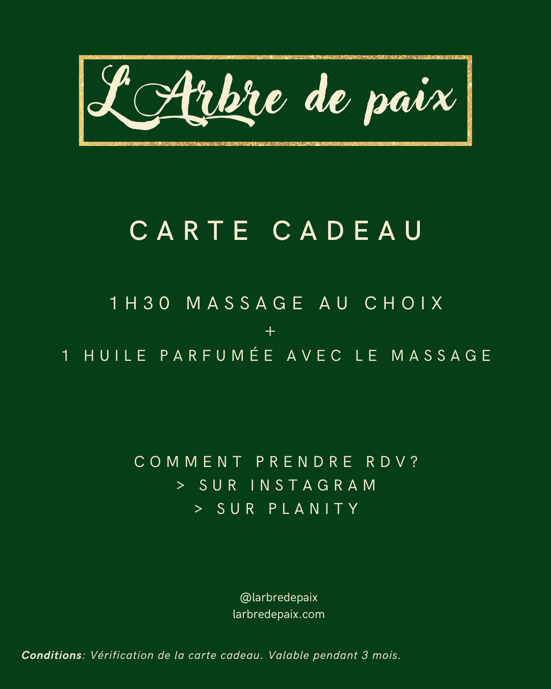 Conditions: Vérification de la carte cadeau. Valable pendant 3 mois.